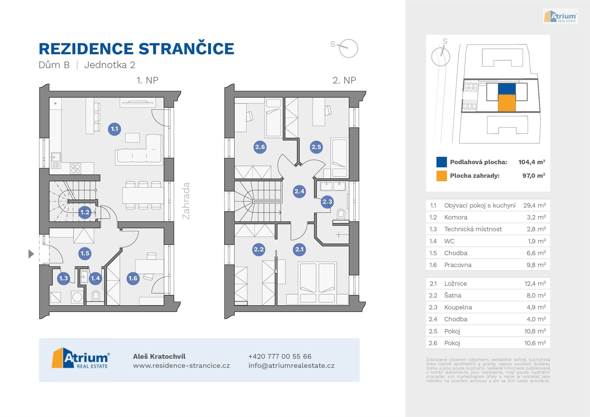 Tato konkrétní jednotka s označením B2, o užitné ploše 104,4 m2, se zahradou 97 m2, je ideální variantou pro rodinu s dětmi, kde si budete užívat klidné bydlení s relaxem na privátní zahradě.