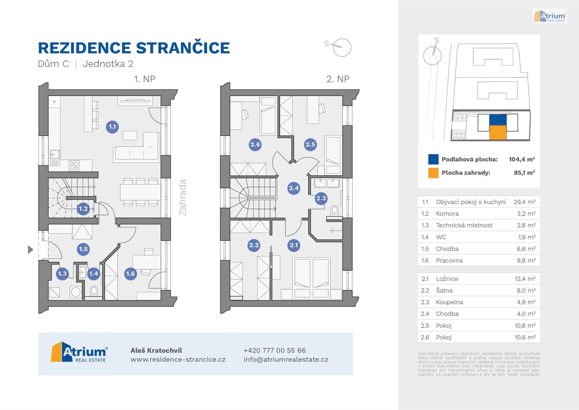 Tato konkrétní jednotka s označením C2, o užitné ploše 104,4 m2, se zahradou 85 m2, je ideální variantou pro rodinu s dětmi, kde si budete užívat klidné bydlení s relaxem na privátní zahradě.